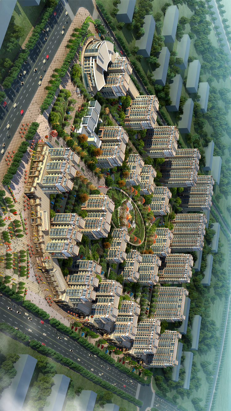 該項目位于鄂爾多斯市東勝區溫家梁, 用地近似菱形, 四周均臨現狀或規劃城市道路, 交通便捷, 包括7棟11-18層高層住宅及配套商業服務設施。