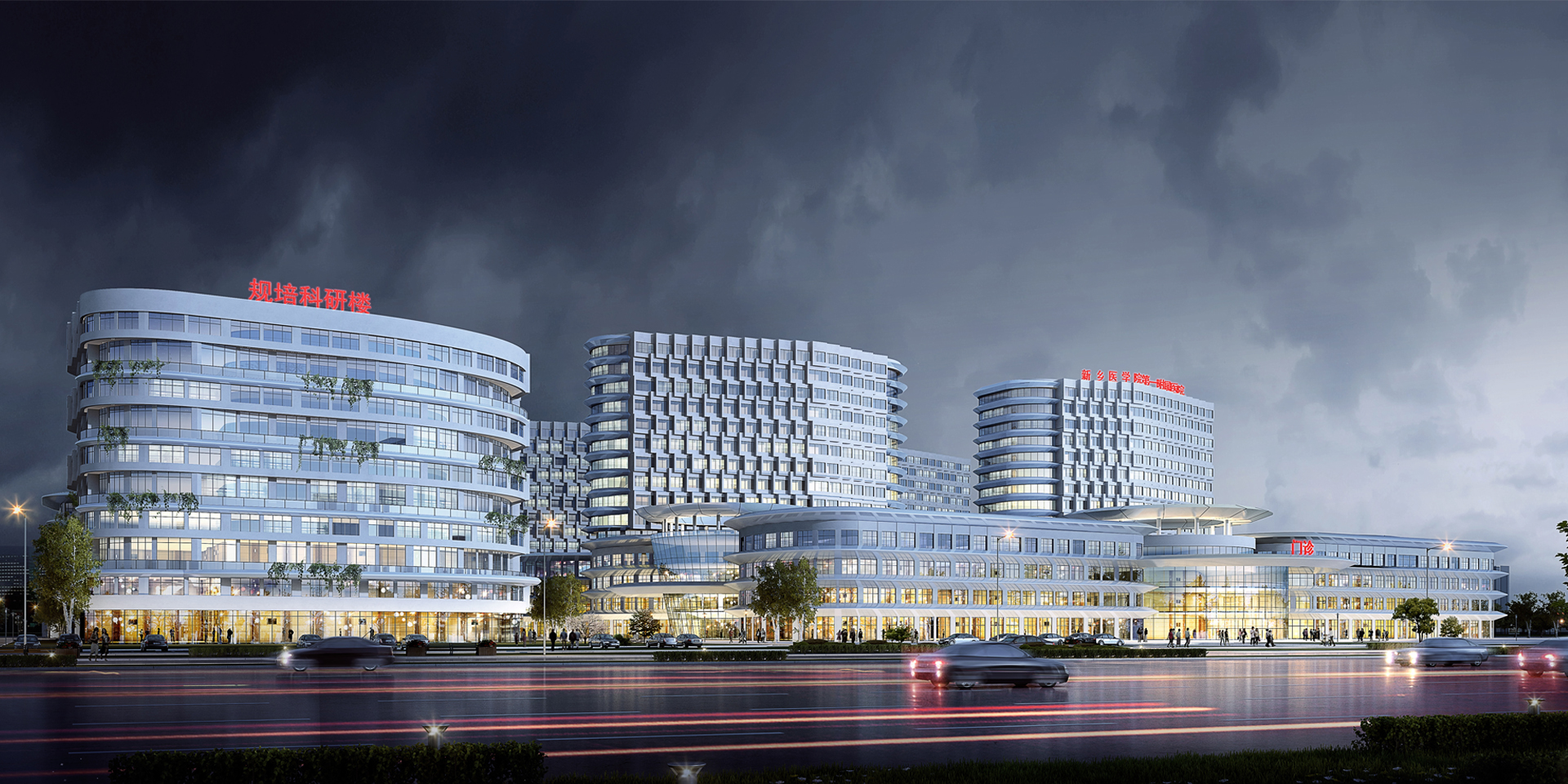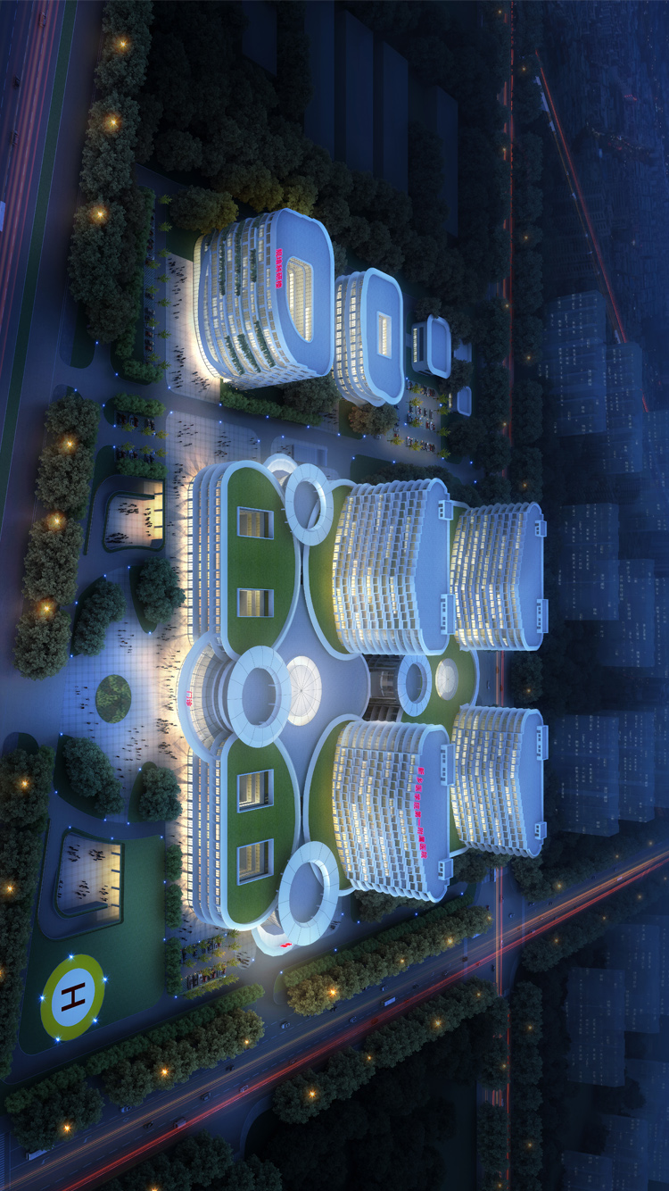 總(zong)體(ti)布(bu)局綜合考慮項目周(zhou)邊交通、環境、空(kong)間等因素(su),將門診、醫技、住院等醫療(liao)區(qu)布(bu)置于(yu)用(yong)(yong)地(di)東側,規培科研用(yong)(yong)房(fang)(fang)、管理生活用(yong)(yong)房(fang)(fang)及保障用(yong)(yong)房(fang)(fang)等布(bu)置于(yu)用(yong)(yong)地(di)西(xi)側。各功能區(qu)即各自獨(du)立,又彼此聯系(xi)方便。整(zheng)體(ti)布(bu)局方正有(you)序(xu),脈絡清晰。遵循項目一(yi)(yi)次規劃、分期(qi)(qi)(qi)實施的規劃要求,充分考慮及平衡一(yi)(yi)、二(er)期(qi)(qi)(qi)之間在(zai)建(jian)(jian)(jian)設(she)用(yong)(yong)地(di)、內(nei)部功能、建(jian)(jian)(jian)筑形(xing)(xing)象等方面的關系(xi),做到分期(qi)(qi)(qi)明(ming)確,并(bing)保持一(yi)(yi)、二(er)期(qi)(qi)(qi)都有(you)獨(du)立完(wan)整(zheng)的建(jian)(jian)(jian)筑形(xing)(xing)象。一(yi)(yi)、二(er)期(qi)(qi)(qi)醫療(liao)區(qu)通過連(lian)廊合理有(you)效的連(lian)為一(yi)(yi)體(ti),二(er)期(qi)(qi)(qi)建(jian)(jian)(jian)設(she)期(qi)(qi)(qi)間不會對一(yi)(yi)期(qi)(qi)(qi)造(zao)成影響(xiang)。 一(yi)(yi)、二(er)期(qi)(qi)(qi)病(bing)房(fang)(fang)樓(lou)整(zheng)齊的排列在(zai)用(yong)(yong)地(di)北(bei)側,坐北(bei)朝南(nan),病(bing)房(fang)(fang)都具有(you)良(liang)好的采光通風及室外景觀效果,4棟病(bing)房(fang)(fang)樓(lou)組成的群體(ti)整(zheng)體(ti)形(xing)(xing)象完(wan)整(zheng)、造(zao)型獨(du)特(te),具有(you)鮮明(ming)的標(biao)示性(xing)特(te)征。鍋爐房(fang)(fang)、垃(la)圾(ji)站(zhan)、液氧站(zhan)、熱交換站(zhan)等輔助用(yong)(yong)房(fang)(fang)布(bu)置在(zai)用(yong)(yong)地(di)西(xi)北(bei)部,相對集中獨(du)立布(bu)置,減少了與醫療(liao)區(qu)的干擾(rao)。