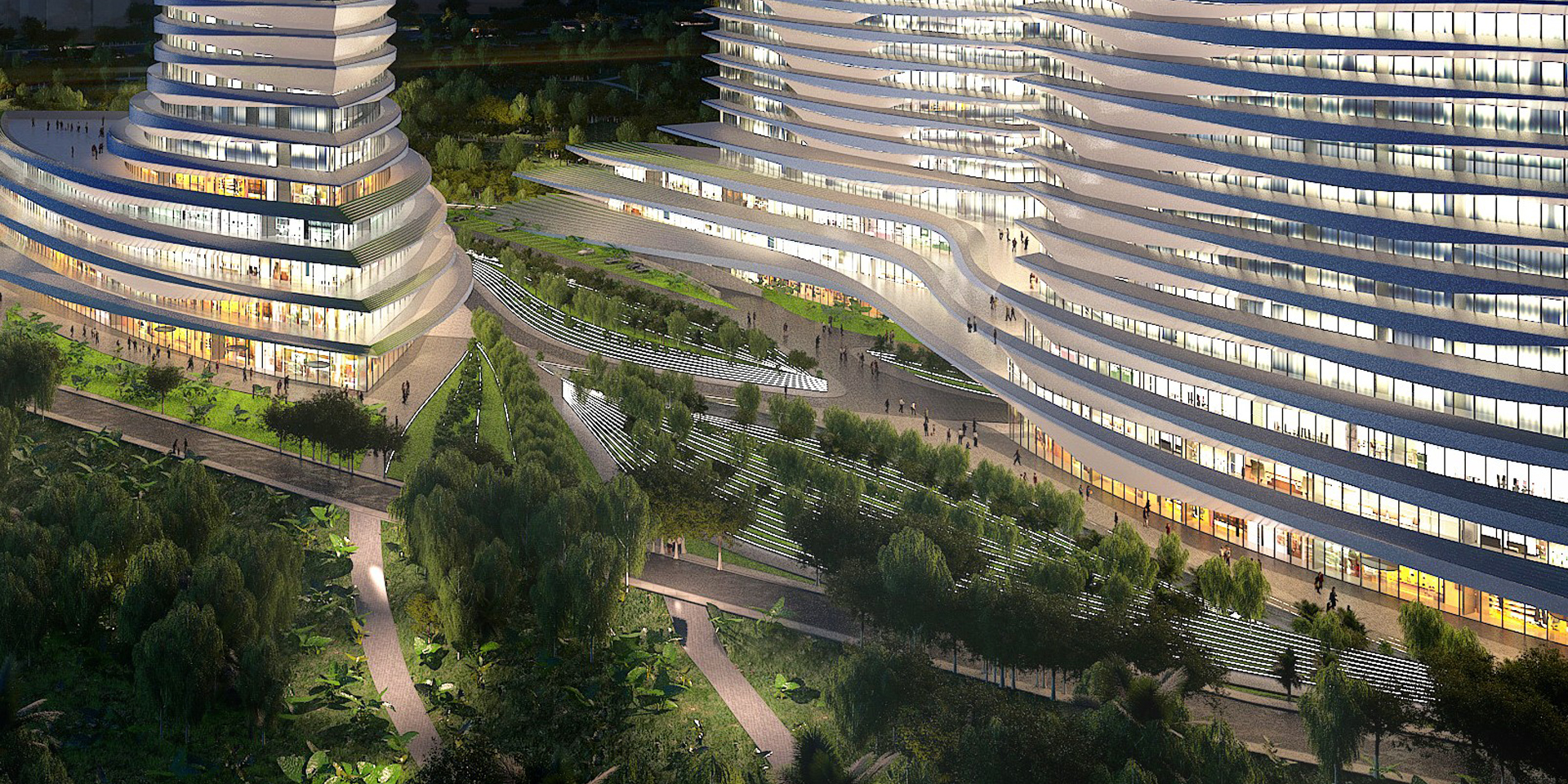 ⑤要求酒店、寫字樓、酒店公寓及配套辦公區之間的分區合理,建筑組團之間宜不影響相應組團的景觀視線、通風及采光。