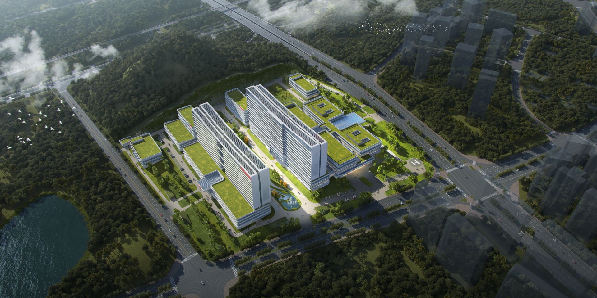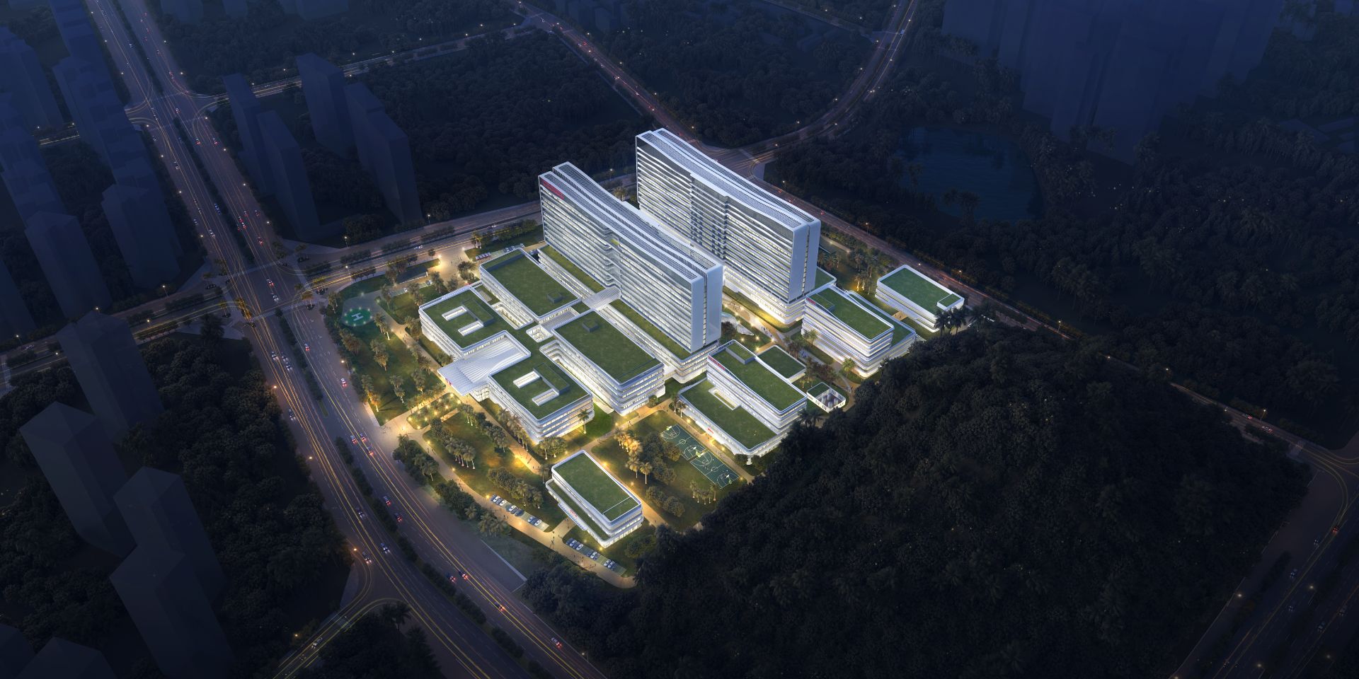 項目位于南寧市青秀區鳳嶺南片區,周邊山巒疊翠,邕江蜿蜒而過,場地選址擁有極佳的自然條件。廣西中醫藥大學附屬瑞康醫院(原廣西中醫學院第二附屬醫院)建于 1951 年,是一家集醫療、教學、科研、預防保健、養生康復為一體的大型綜合中西醫結合醫院。