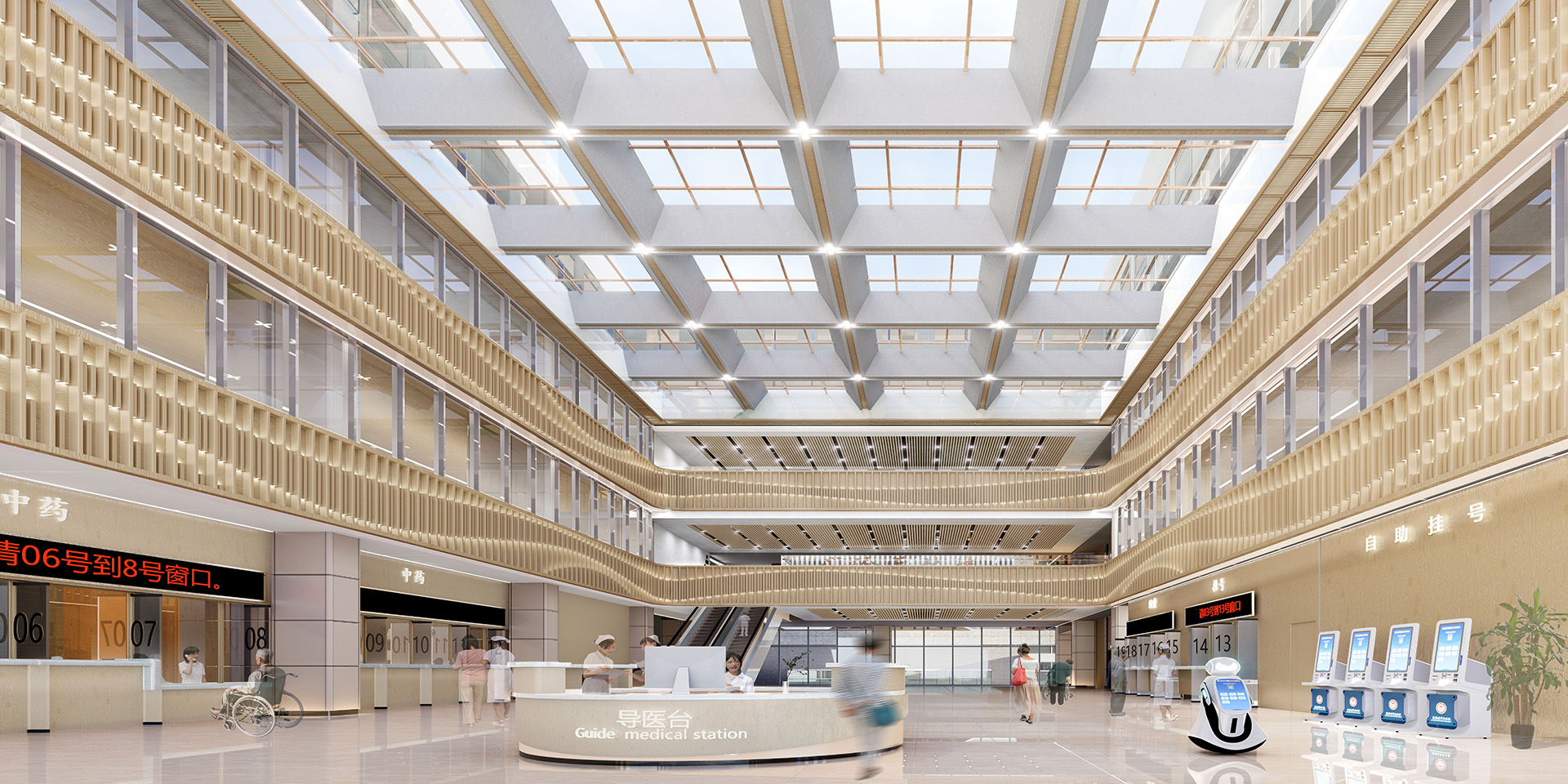 設計提取當地自然景觀與人文元素,結合場地地形的特殊性和中醫院的特點,通過現代化的形象展現中國文化及彝族特色的風采,采用楚雄民居靈動活潑的曲線屋頂樣式,提取當地文化元素,通過現代化符號的演變生成立面形象,使醫院外觀古新交融,獨具特色,為院區帶來不一樣的藝術美感,為楚雄城市形象增添一抹靚色。
