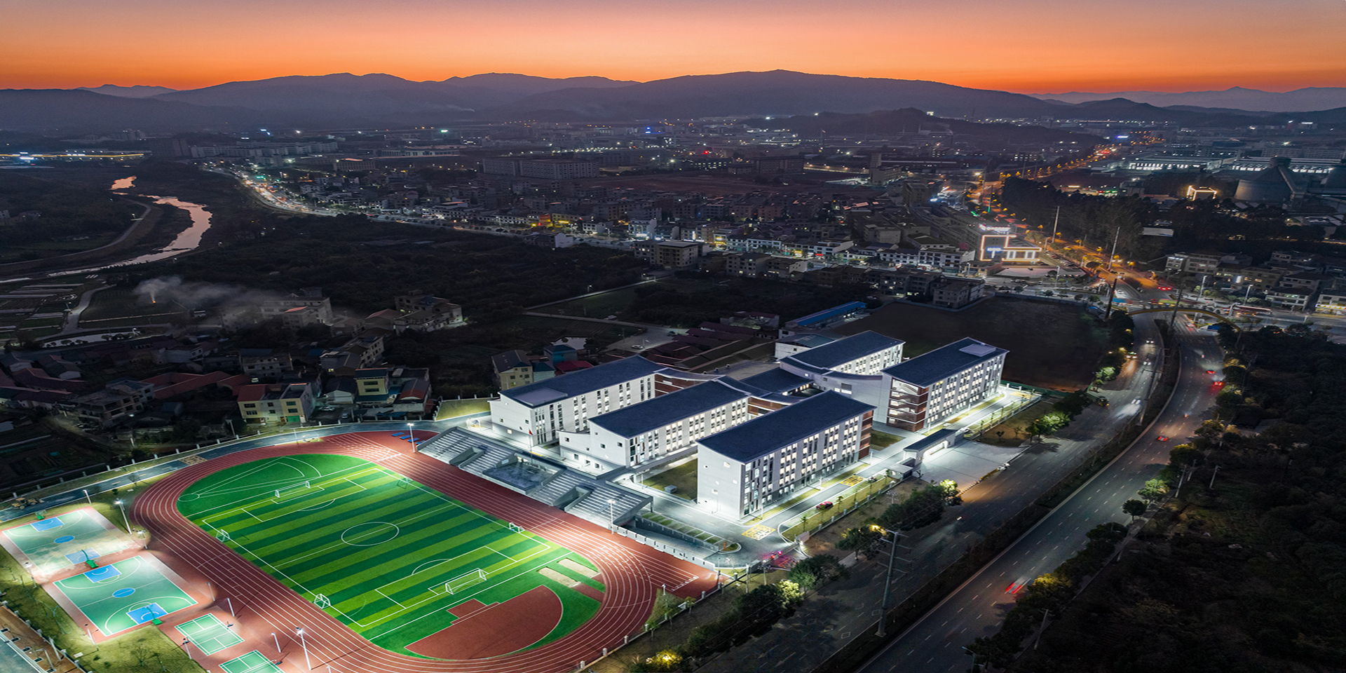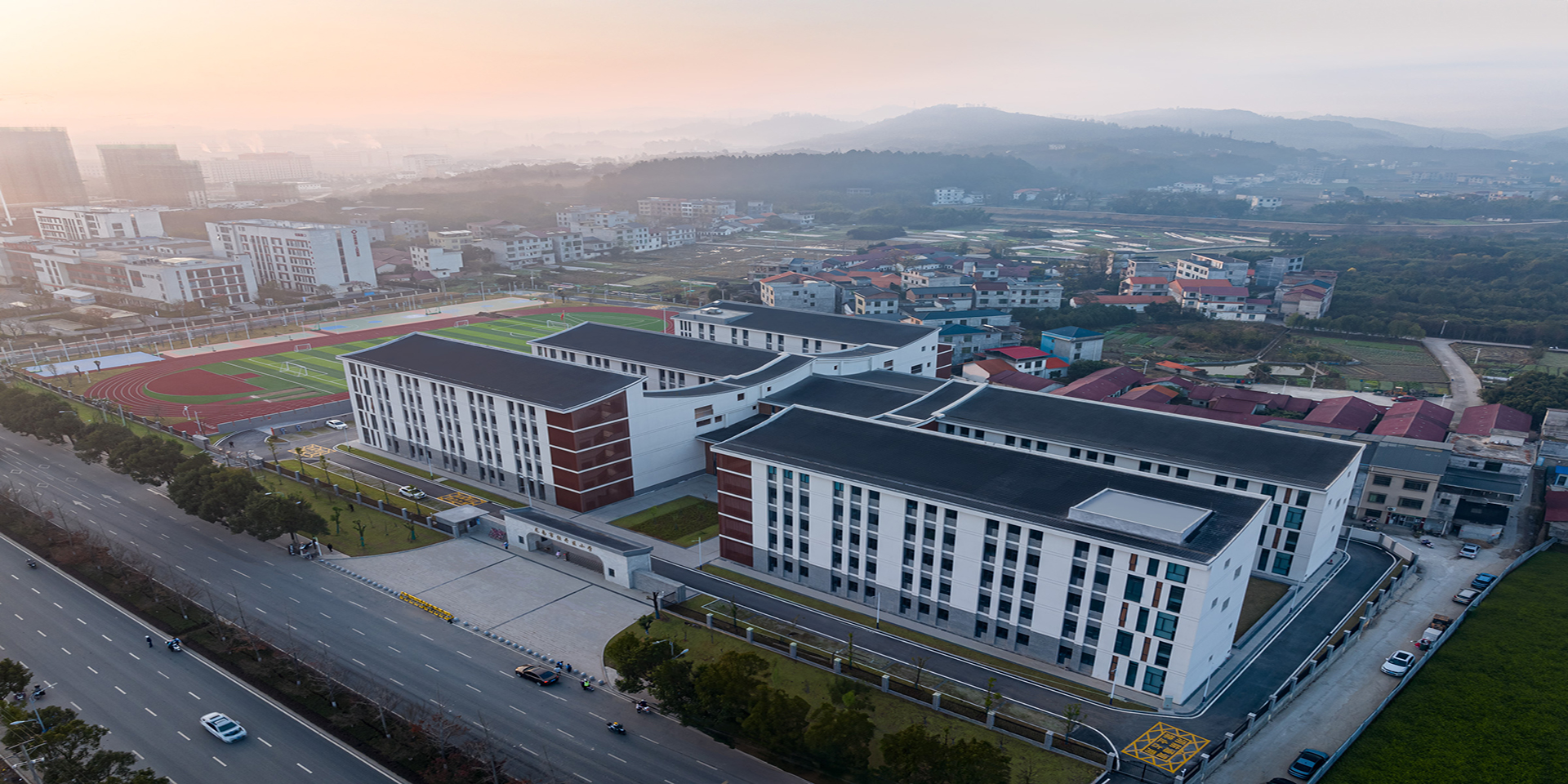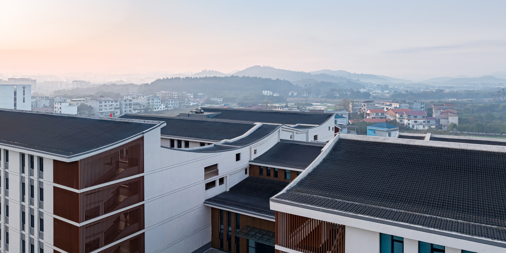 思源中和分校是一所42班的公立小學,學校占地約60畝,建設總規模約18000平米,容納1890名學生。項目位于江西龍南市,龍南是世界圍屋之都,境內分布著376座各具特色的圍屋,占贛南客家圍屋的70%以上。基地所處的東江鄉工業園區遍布著各式各樣的新建廠房,傳統贛南村落的自然肌理早已蕩然無存,我們希望以客家圍屋為原型,文化印象為出發點,為工業園區創造出一方既符合當代校園特色又具有傳統人文精神的學習生活場所。