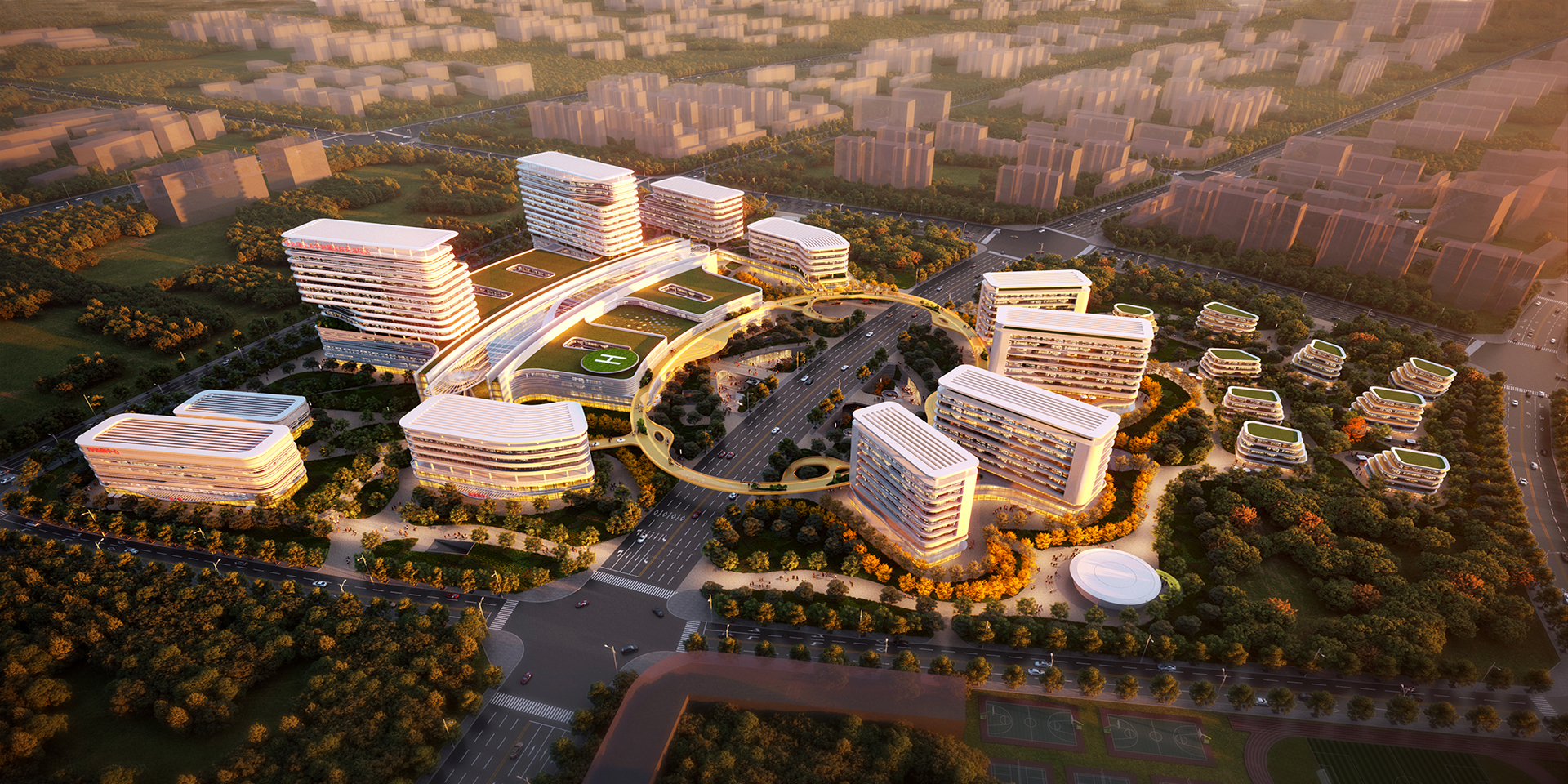 項目用地位于唐(tang)山中心城區(qu)東側,距(ju)離(li)花海(hai)1公里。基地(di)總用地(di)面積15.1萬平方米,其中東地塊9.2萬,西地塊(kuai)5.9萬。規劃總建筑面積(ji)37.58萬平(ping)方米,其(qi)中東地塊23.67萬,西地(di)塊(kuai)13.91萬,規劃總床位數1500張(zhang)。項目(mu)以河北省建設4個省(sheng)級區域醫療(liao)中心為(wei)背景,對標(biao)國內外一(yi)流(liu)醫療(liao)機(ji)構。為(wei)此我們提出“花(hua)海HOD”開發(fa)模式,即以醫(yi)療服(fu)務為核心,引(yin)導教(jiao)育培訓、科技(ji)研(yan)發(fa)、康復防治、醫(yi)養防護、健康旅游,實現“醫(yi)、教(jiao)、研(yan)、康、養、游”的(de)多功能(neng)復合(he)共生,打造(zao)“立足(zu)唐山、面向全(quan)省、輻(fu)射冀(ji)東北(bei)”的(de)區域醫(yi)療中心。